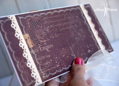Efekty bywają różne, np. takie: kopertówki z papierów Primy plus własnoręcznie wykonane kwiaty. Przepis na białe stokrotki (?) znajdziecie na moim blogu, a róża (piwonia?) powstała z wykrojnika Sizzix Bigz Die - Kwiatki by Tim Holtz, z którego wycinanki podbarwiłam tuszami Distress.
